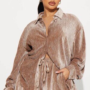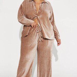 WEBSITE LINK: https://www.fashionnova.com/products/jenelle-velvet-plisse-pant-set-mocha?variant=39272276525180