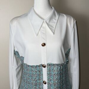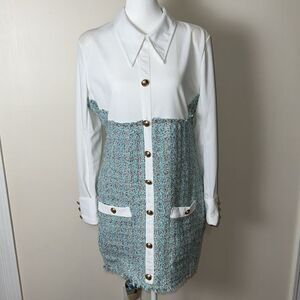 Jenifer Elegant White Tiffany Blue BoucleβTweed Long Sleeve Mini Dress