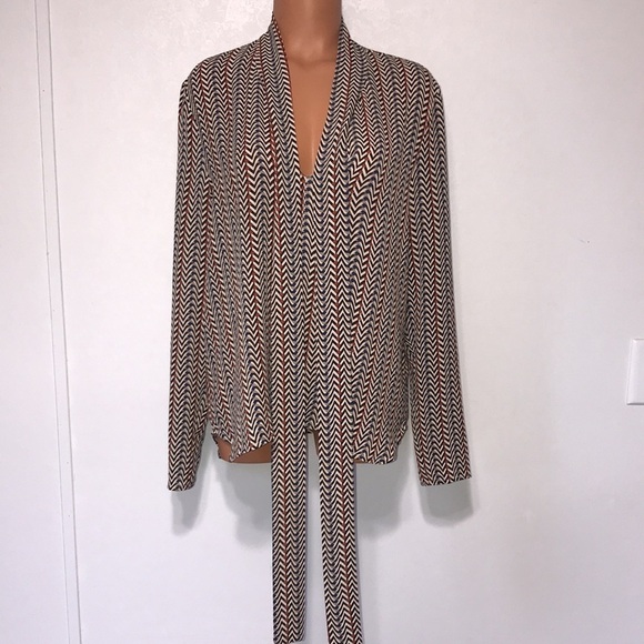 Jenn Zig Zag Neck Tie Long Sleeve Top Brown Size EU 40
