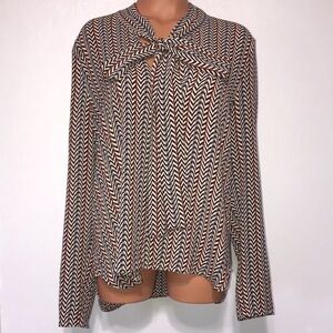 Jenn Zig Zag Neck Tie Long Sleeve Top Brown Size EU 40 Chest 21 inches straight across Length 26 inches