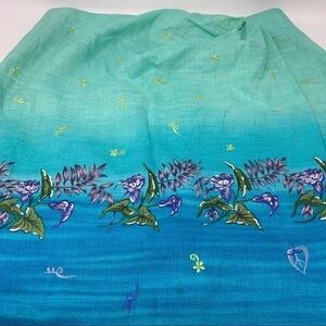 Jenna Ombre Embroidered Linen Sarong Wrap Maxi Skirt Size 12 Blue Green Floral