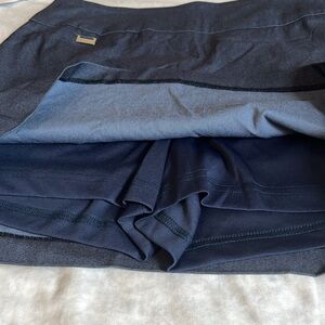 Jenna Rose denim-like blue pull on skirt with attached inner shorts. Comfort waistband. Soft super stretch fabric