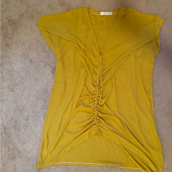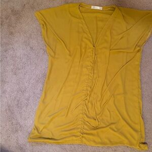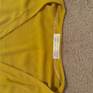 This is a beautiful one size mustard Caftan by Jennafer Grace. The front can be gathered via tie for an adjustable