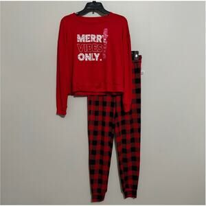 Jenni Intimates Pajama Set Womens XS Red MERRY VIBES ONLY Buffalo Plaid Lounge