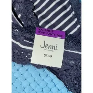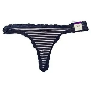Keywords: Jenni Intimates, Thong, Panty, XXL, Nairobi Stripe, Navy Blue, White, Lace Trim, Womens Lingerie, Striped Panties, Cotton Blend, New with tags, Underwear, Intimates, Womens Clothing
