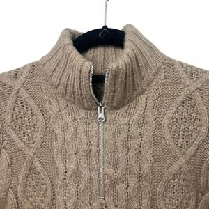 Jenni Kayne Alpaca Wool Cable Knit Half Zip Mock Neck Sweater Relaxed Fit Small
