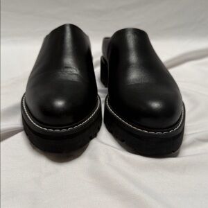 Jenni Kayne Black Leather Lug Mules. Size 38. Retail for $395. See photos for condition.