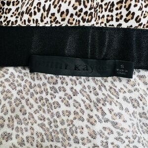Elegant midi skirt by Jenni Kayne. Features a black and cream animal print pattern. Perfect for any occasion.