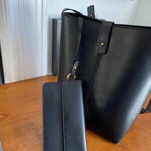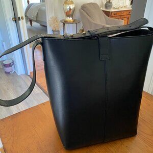 This bag is still available in a mini version in a different color (@$595.00) on the Jenni Kayne site. It is in excellent condition with no marks or stains. Like new. Beautiful black bag with attached smaller bag and clasp for keys, bills etc. Made in Italy.