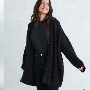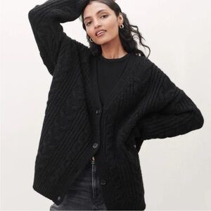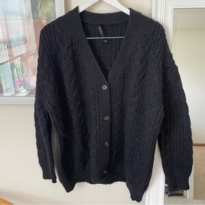 Jenni Kayne Cable Cocoon Aplaca Chunky Button Cardigan Sweater in Black Size XS