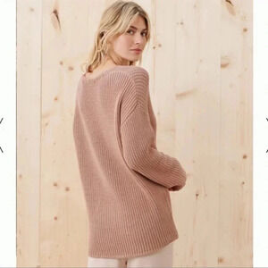 Jenni Kayne Cotton Cabin Sweater Oatmeal V Neck Oversized Knit Pullover Brown