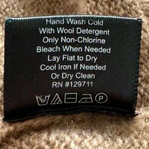 Ribbed edges at wrist, neck & hem Dry clean or hand wash cold lay flat. The color is slightly lighter than the pics. Stock number 457-7388- D20.