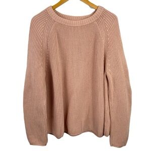 Jenni Kayne Fisherman Knit Sweater In Blush Cotton Oversized Ribbed Crewneck XXL