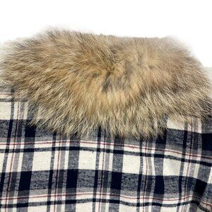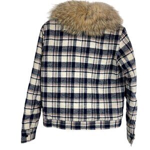 Jenni Kayne Flannel Checked Coyote Fur Collar Full Zip Jacket Navy Ivory M