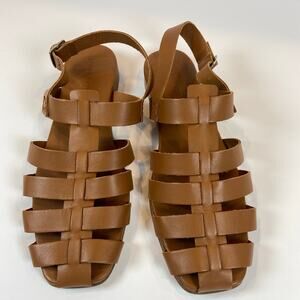 Jenni Kayne Leather Lake Sandal Fisherman Style Square Toe Brown 41 / US 11
