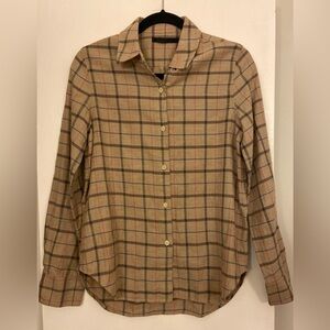 Jenni Kayne Lightweight Flannel Taupe Plaid Size XS.