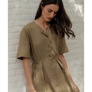 Jenni Kayne Linen Button Down Day Maxi Dress Size XXL Khaki Casual Boho Chic