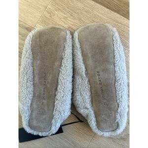Jenni Kayne Moroccan Suede Slippers Size Large Color Smoke NWT NEW Furry Fluffy