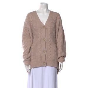 Jenni Kayne Neutral Cable Knit Cardigan Sweater Oversized capsule Button XL