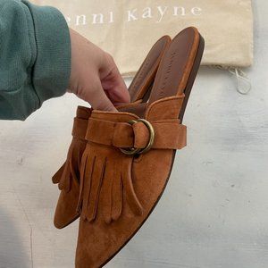 Jenni Kayne Pointed Toe Mule Suede Brown Fringe Slip-on Flats