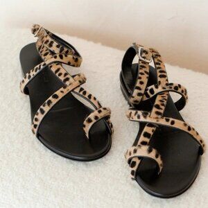 Jenni Kayne Pony Hair Strappy Sandals in Cheetah Size 38 US 8 NEW