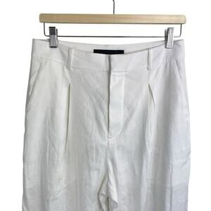 Jenni Kayne Riley Linen Blend Pleated Front Relaxed Fit Trouser Pants White Sz 4