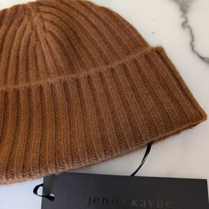 Jenni Kayne Rust Brown Ribbed Beanie Cashmere