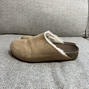 Jenni Kayne Shearling-Lined Moc Clog in Taupe Brown Size 37