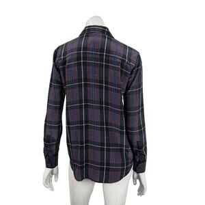 Jenni Kayne Silk Button up Blouse Maroon Blue Plaid Size XS