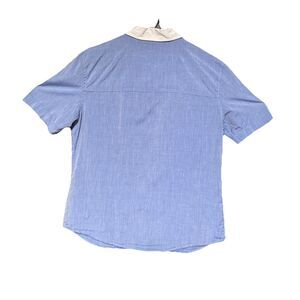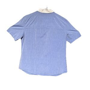 Jenni Kayne Size M Button Down Short Sleeve Shirt Blue White Pockets