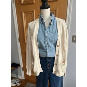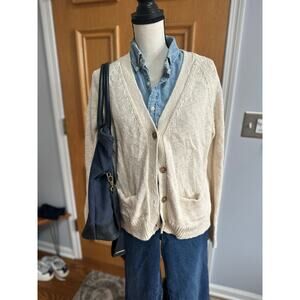 Jenni Kayne Stanford Women’s Linen Cotton Cardigan Sweater Beige Button Large