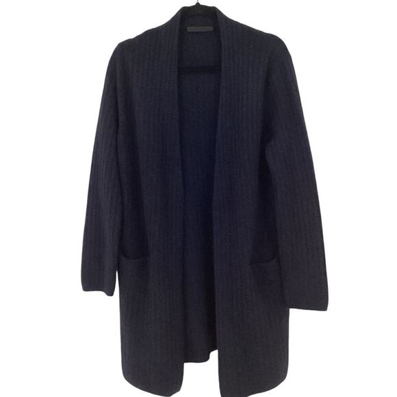 Jenni Kayne Sweater Coat In Navy Size Small Ribbed Open Front Wool Yak Blend