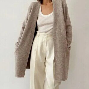 Beautiful "Sweater Coat" cardigan in a taupe color ("Oatmeal"). Super cozy and perfect for layering.