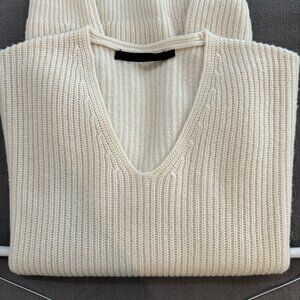Jenni Kayne Sweater in ivory. Size XXS, but super roomy and oversized The v-neck adds sophistication to this cozily oversized, super-soft sweater. Looks great layered over a dress, or on its own with jeans. Still on the jennykayne.com website and at Saks Fifth Ave. Like new.