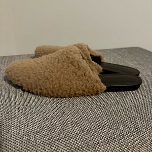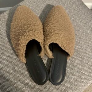 Jenni Kayne Tan Fuzzy Shearling Mules | Very Good Condition
