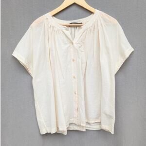 Jenni Kayne Willow Cotton/Linen Cream Button-up Shirt Blouse Top, size L