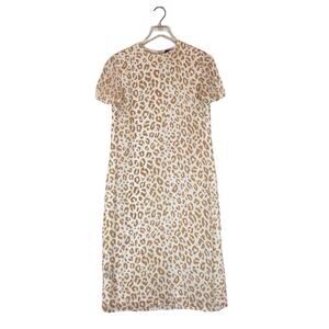 Jenni Kayne Womens 100% Silk Midi Shift T-Shirt Dress Size XS Cheetah Minimalist