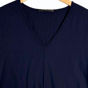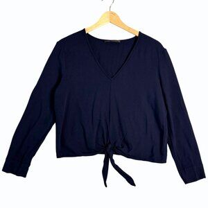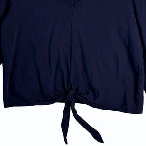 Jenni Kayne Womens V Neck Tie Front Blouse Size XS Navy Capsule Wardrobe Minimal