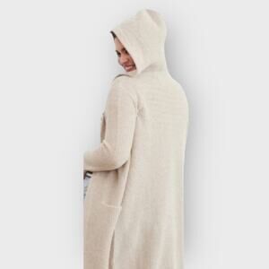 Jenni Kayne XS Oatmeal Cotton Linen Long Hooded Cardigan Cozy Everyday Luxe