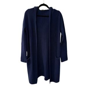 Jenni Kayne XS Waffle Knit CASHMERE Wool Hooded Cardigan Sweater Coat Navy 2 4
