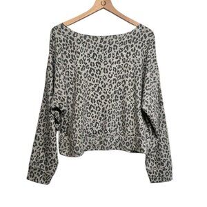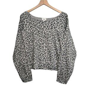Jenni On Repeat Womens Large Gray Leopard Print Super Soft Crew Sleep Top Lounge