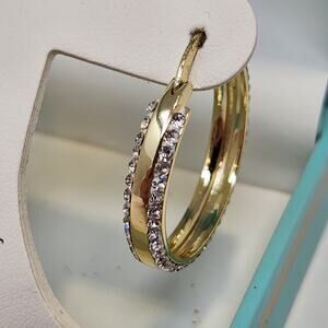 Jenni Park Swarovski Crystal Gold Tone Round Hoop 1" Earrings Lightweight New