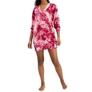 Jenni Printed Long Sleeve Sleep Shirt Pink Splash Tie Dye XL