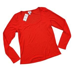 Jenni Women Bright Red Solid Ribbed Knit Long-Sleeve Pajamas Top Size S