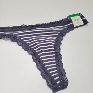 Jenni Women's Lace-Trim Thong Panties Nairobi Stripe Navy NWT Size Large