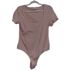 Comfy scoop neck and short sleeves. Snap closure with thong style back.