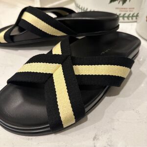 Jenni Kayne Cotton Crossover Sandal Black Stripe size 39
