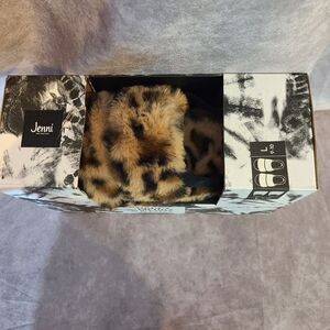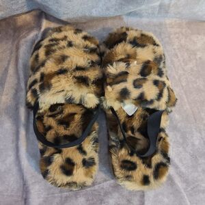 Jenni Leopard Print Fuzzy Slippers Size Large NIB