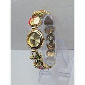 Jennie B Avon Christmas Slide Charm Bracelet Watch Gold Tone Quartz New Battery