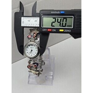 Silver tone is worn in areas but still wearable as is. Item shows light scuffs and scratches consistent with normal wear. It has power and is currently running.